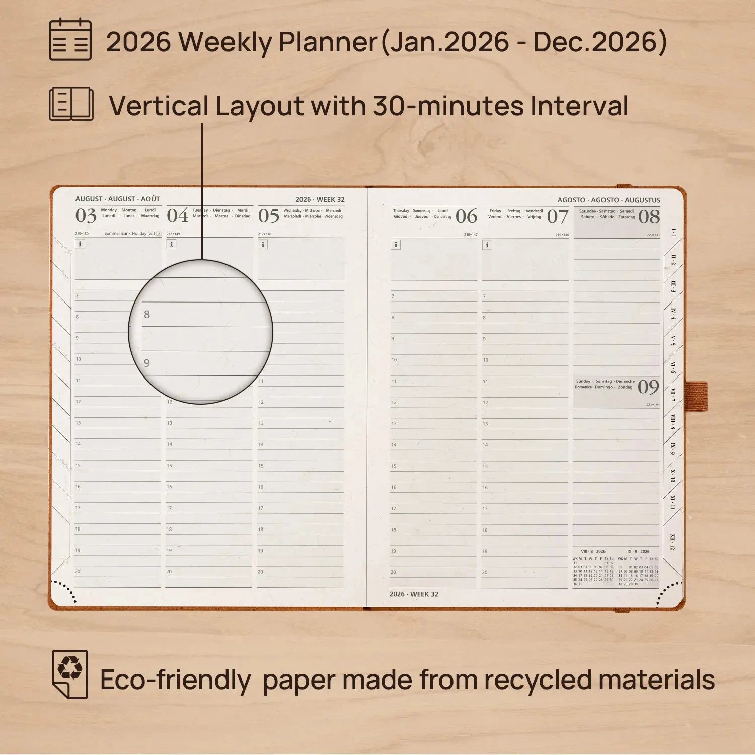 EU Medium Size Recycled Weekly Planner 2026 Hardcover