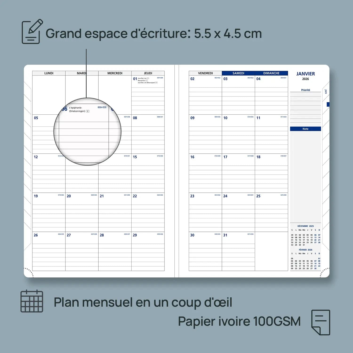POPRUN 12-Month Softcover Weekly Planner Keep your work and personal life in balance with our 12-month weekly planner. Covering January to December 2026, it features a clear weekly layout that helps you efficiently organize tasks, goals, and appointments, whether for work or personal matters. The week-at-a-glance view gives you structured oversight of your priorities, while the 12-month planner view supports long-term planning. Designed for busy schedules, this planner keeps you focused, prepared, and always in control. |