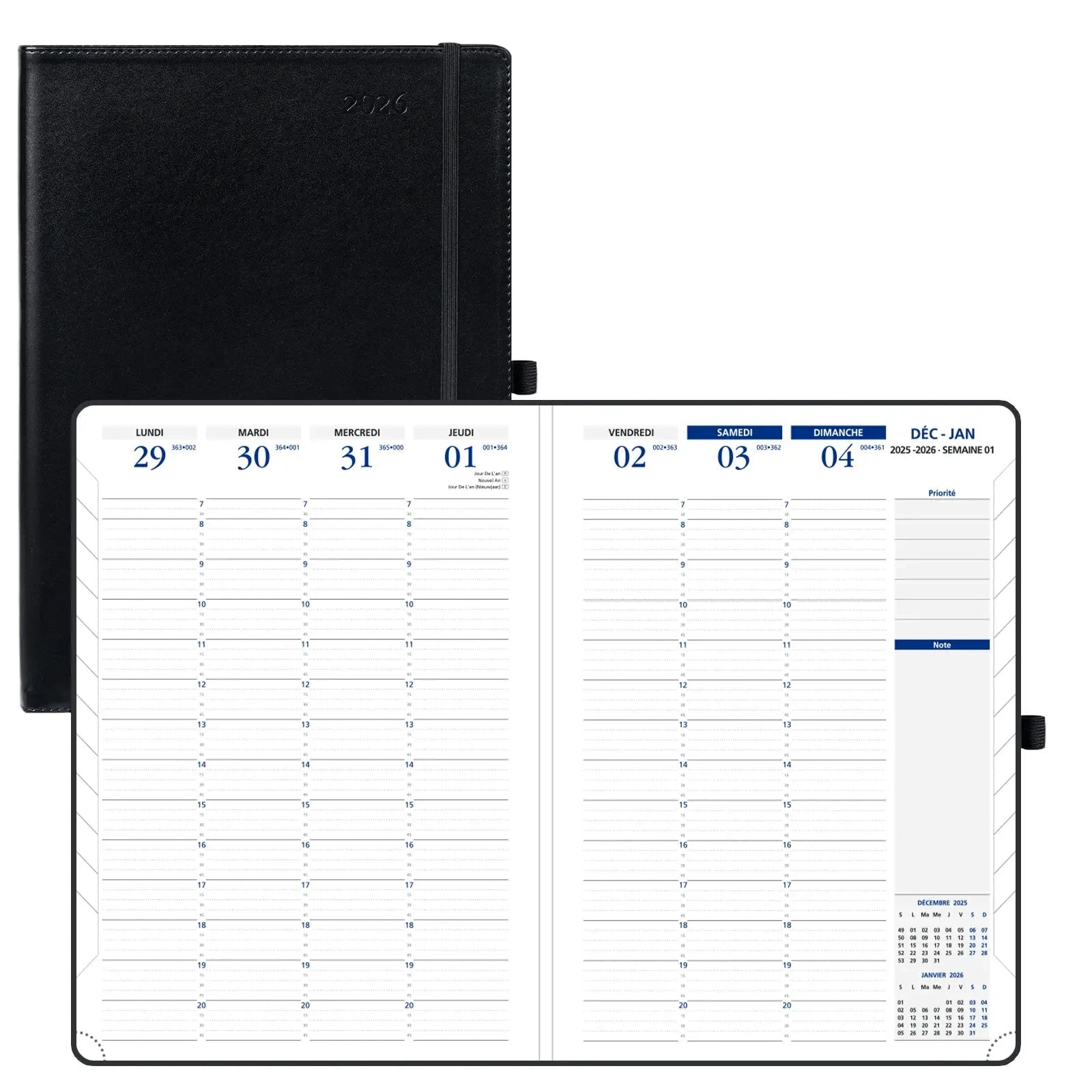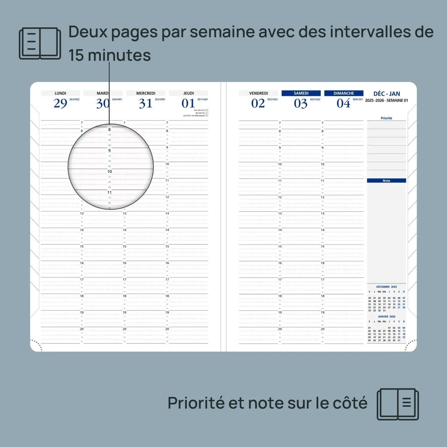 French A4 Weekly Planner 2026 Softcover | 15-Minute Intervals