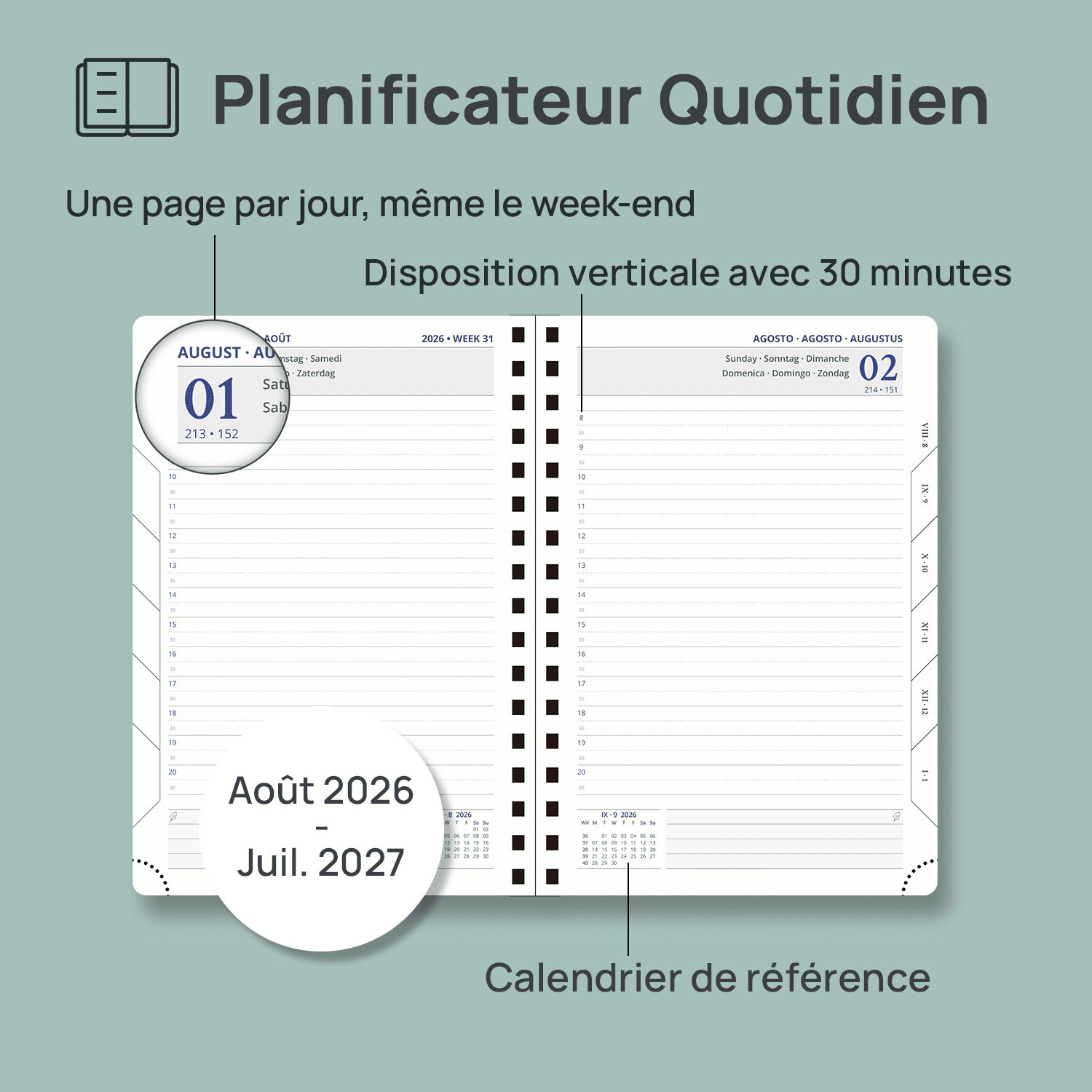 FR A5 Size Daily Academic Planner 2026-2027 30-Minute Interval Spiral Hardcover