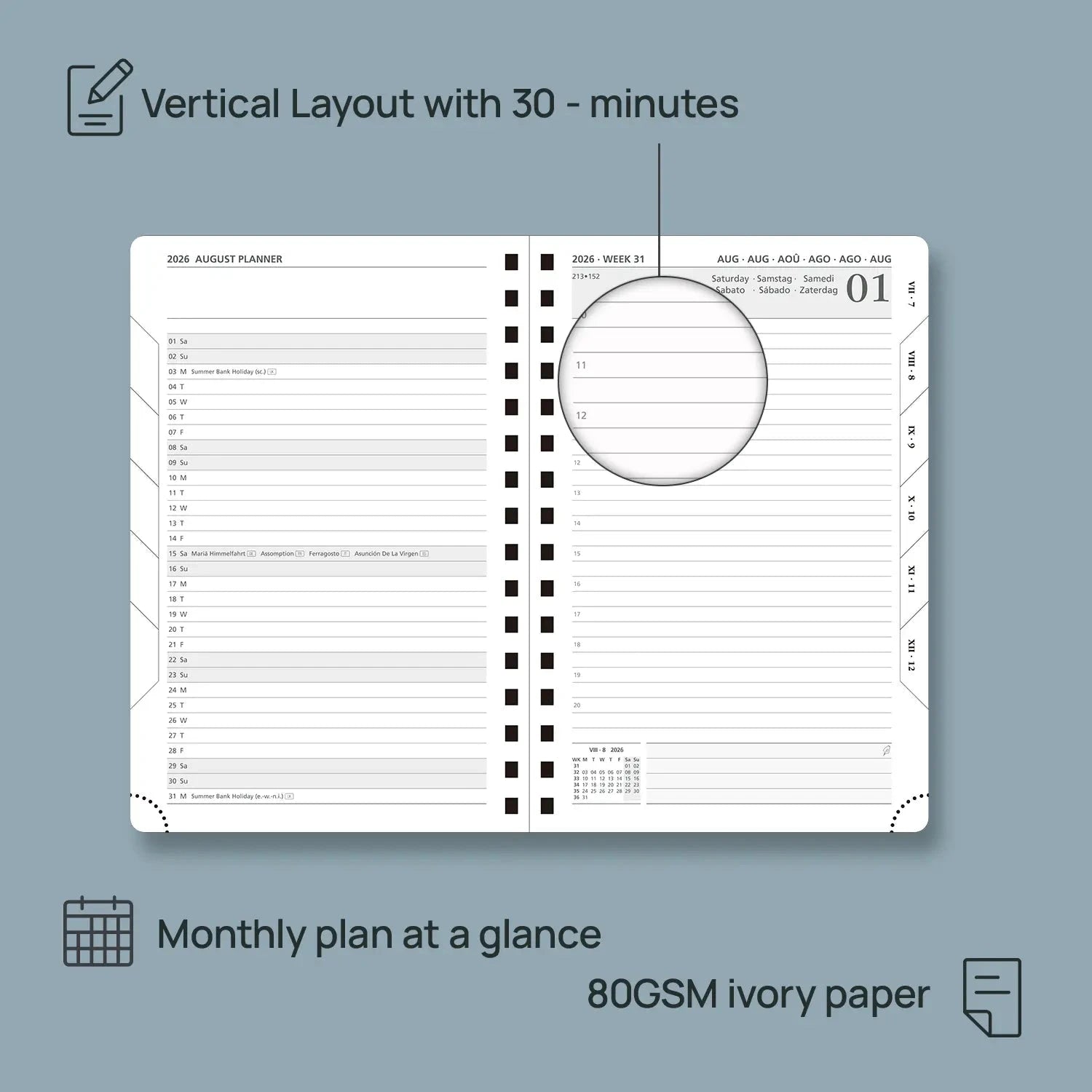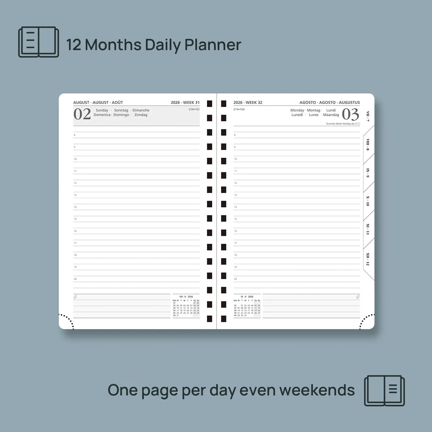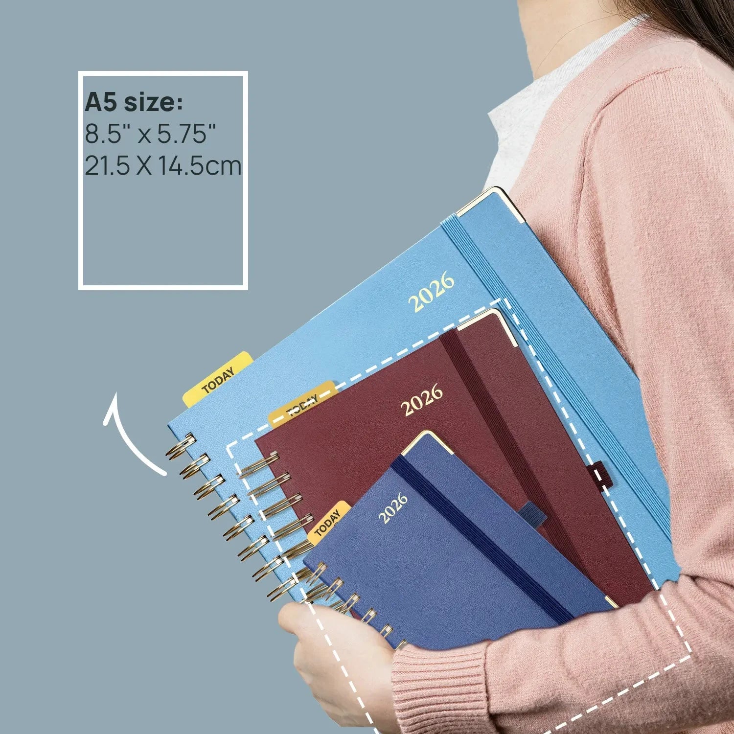 EU A5 Daily Planner 2026 Spiral Hardcover Calendar Planner