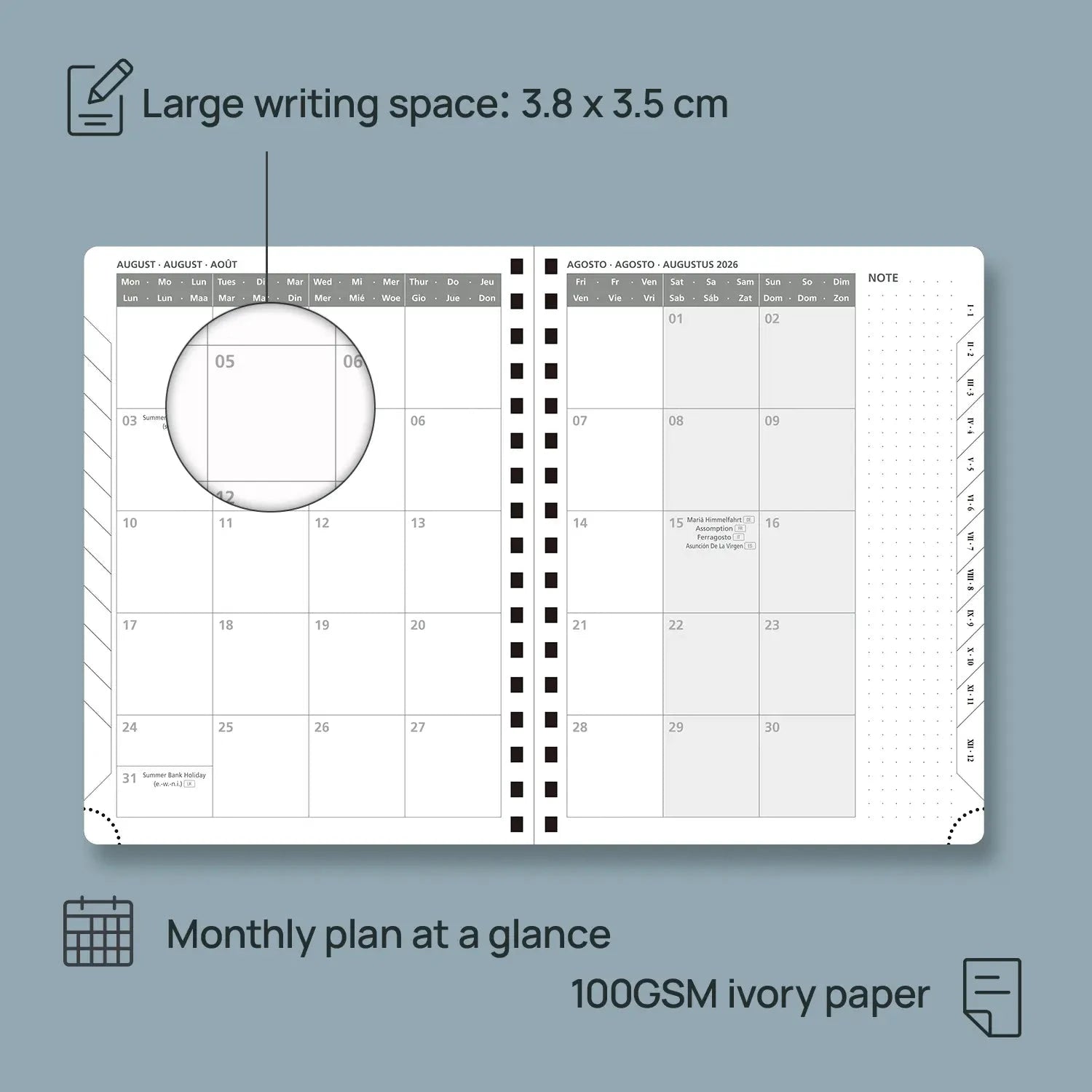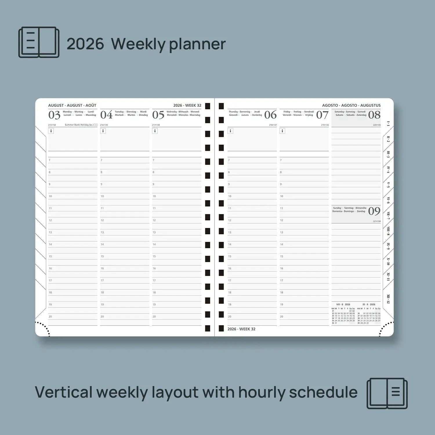 EU Medium Size Weekly Planner 2026 Spiral Softcover Calendar Planner
