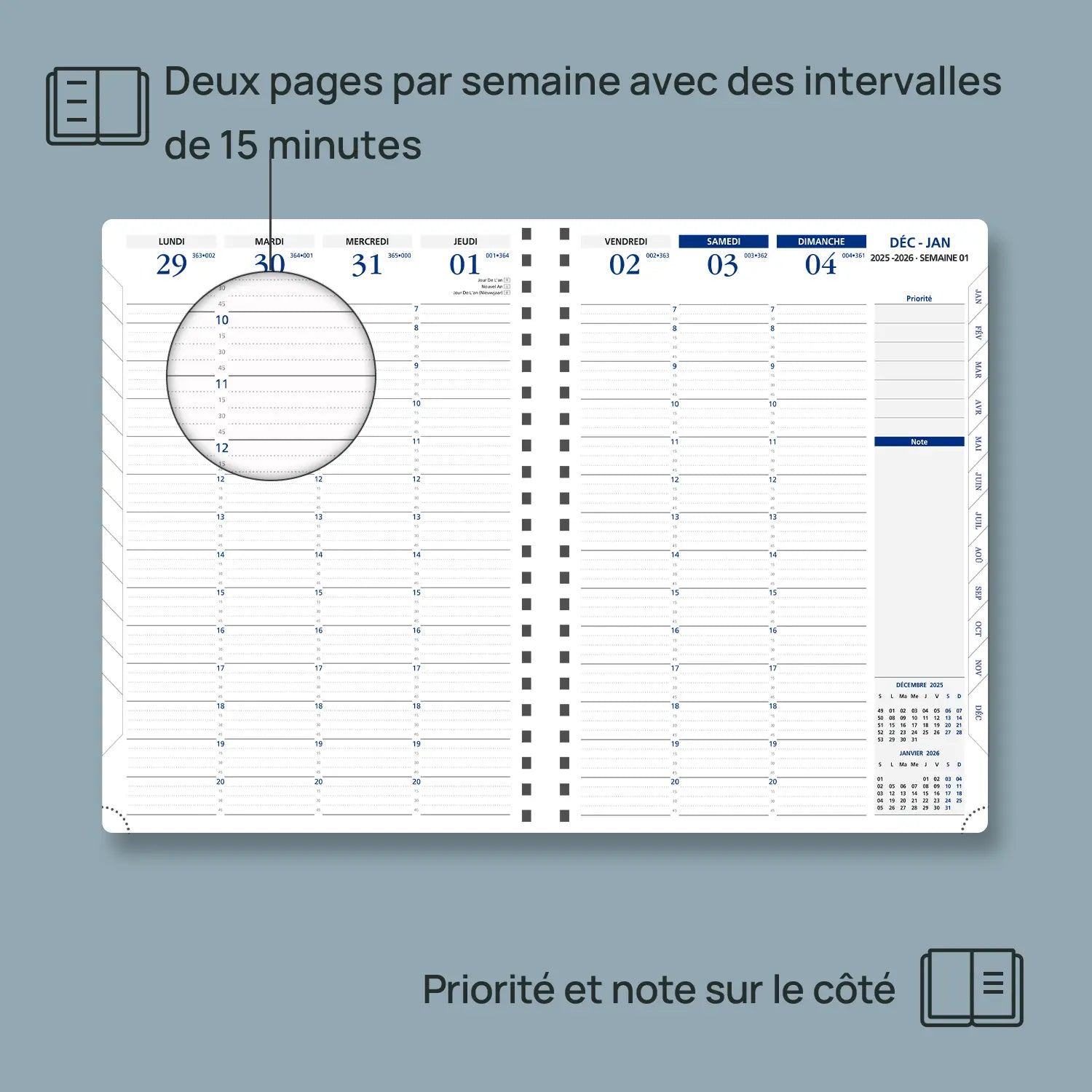 French A4 Weekly Planner 2026 15-minute intervals Softcover Appointment Book