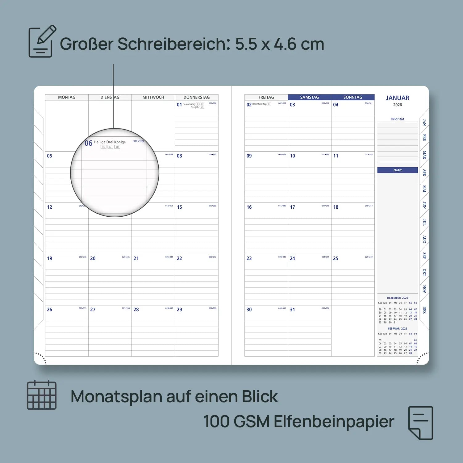 POPRUN 12-Month Softcover Weekly Planner Keep your work and personal life in balance with our 12-month weekly planner. Covering January to December 2026, it features a clear weekly layout that helps you efficiently organize tasks, goals, and appointments, whether for work or personal matters. The week-at-a-glance view gives you structured oversight of your priorities, while the 12-month planner view supports long-term planning. Designed for busy schedules, this planner keeps you focused, prepared, and always in control. |
