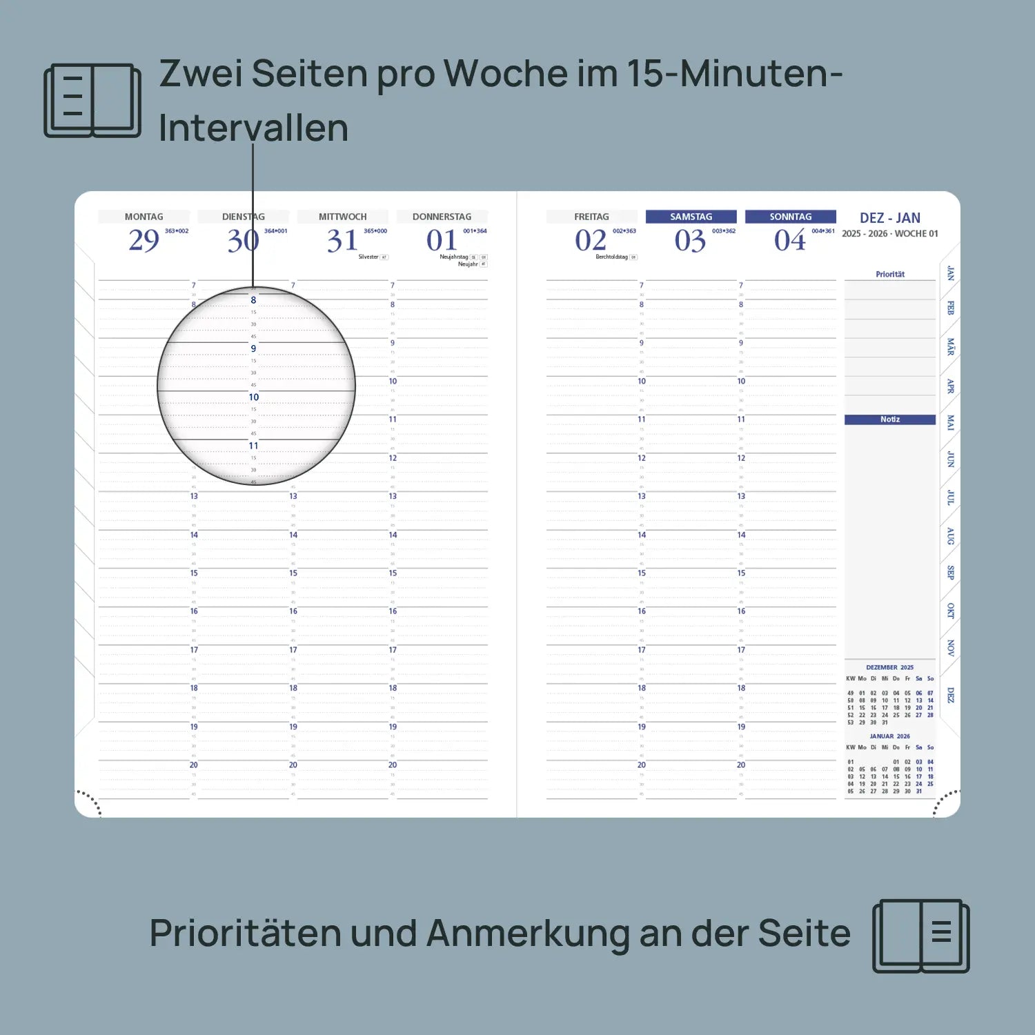 German A4 Weekly Planner 2026 Softcover | 15-Minute Intervals