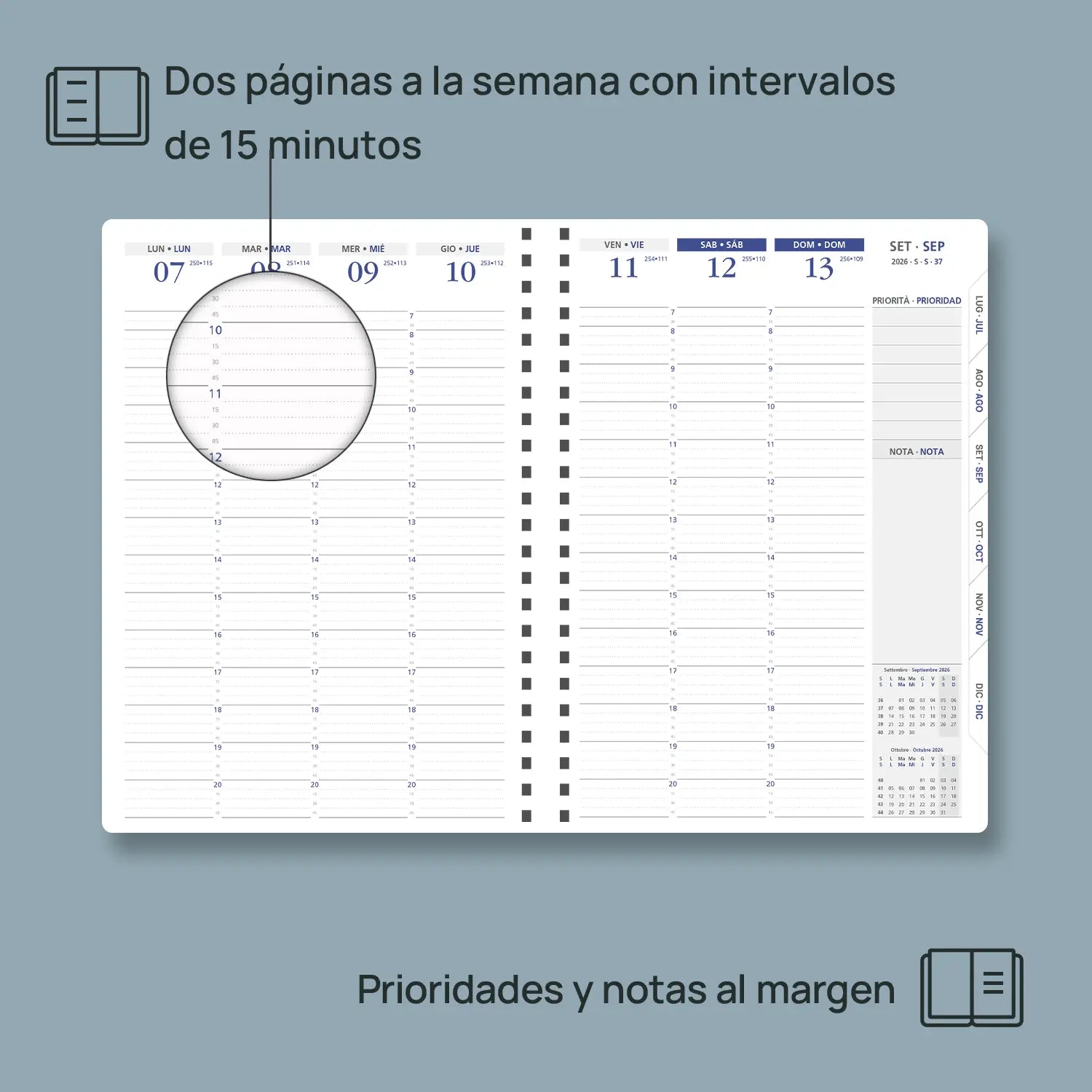 Spanish A4 Weekly Planner 2026 15-minute intervals Softcover Appointment Book