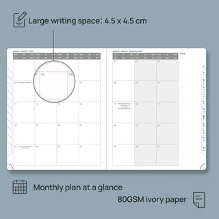 • 2 PAGES PER WEEK WITH LINED NOTES: The horizontal weekly layout offers 2 pages per week, with a lined notes section for every day, ensuring enough room to write to-do list. Additionally, each monthly layout includes an overview of the month and a dotted notes area on the right side.
