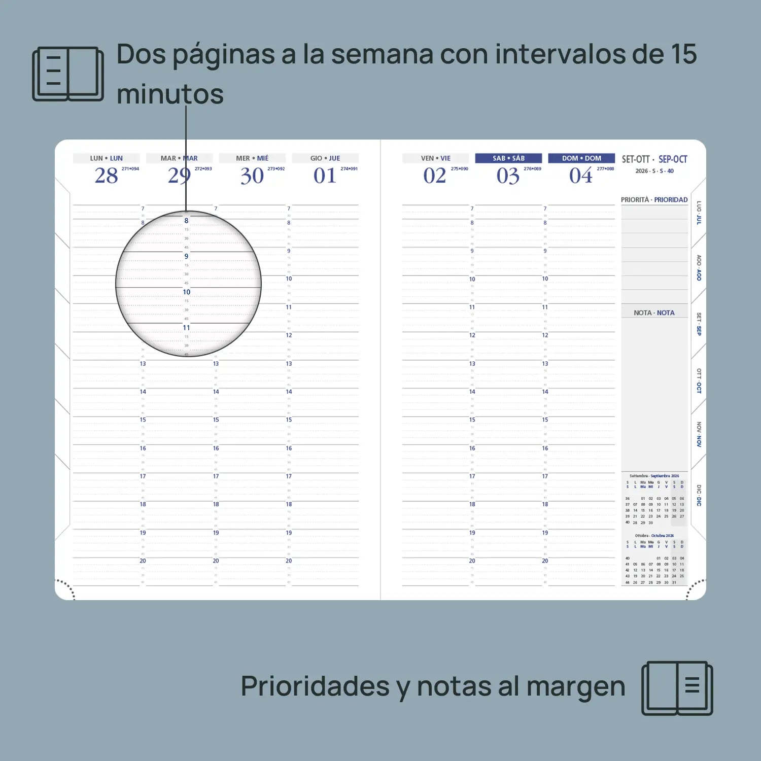 Spanish A4 Weekly Planner 2026 Softcover | 15-Minute Intervals