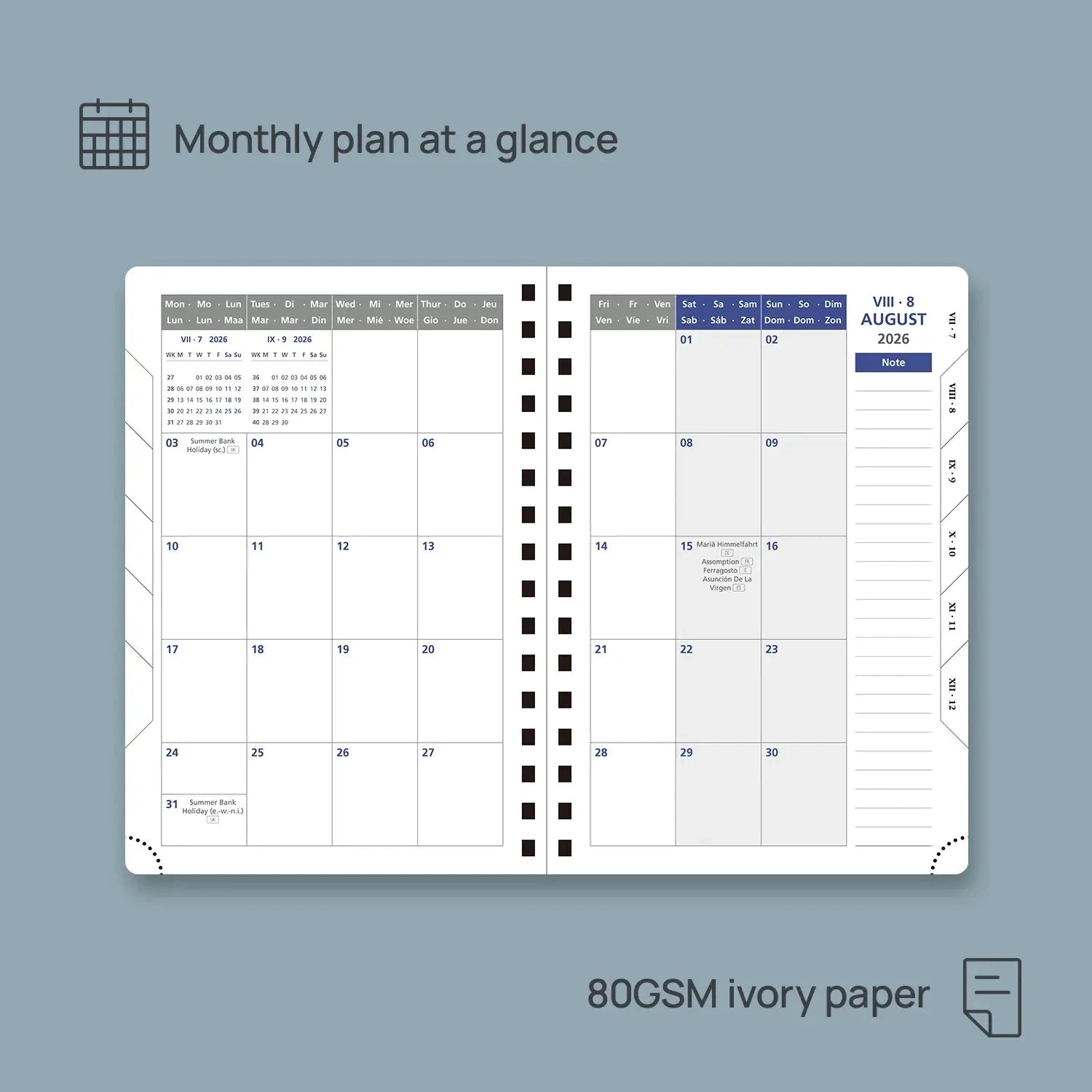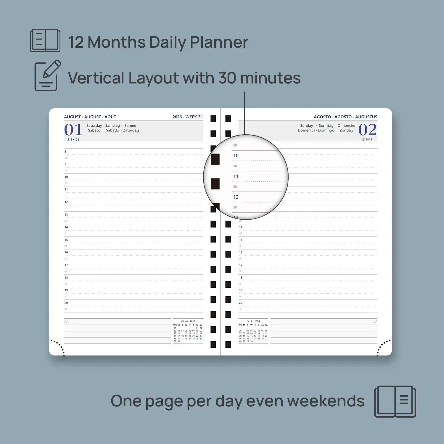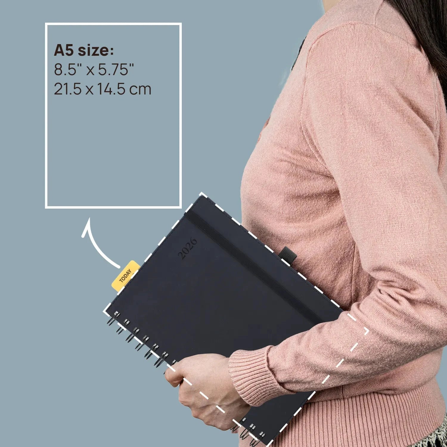 EU A5 Daily Planner 2026 Spiral Softcover Calendar Planner